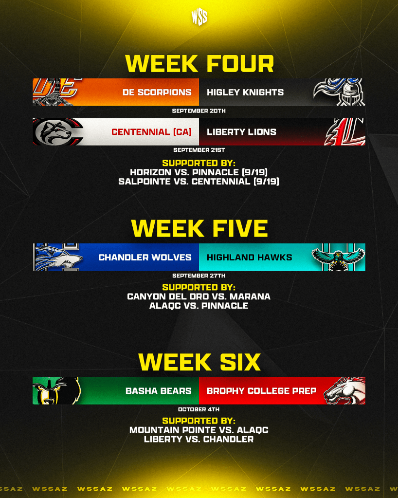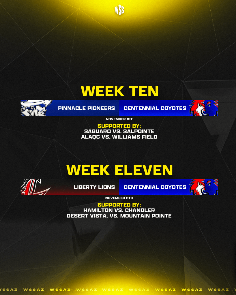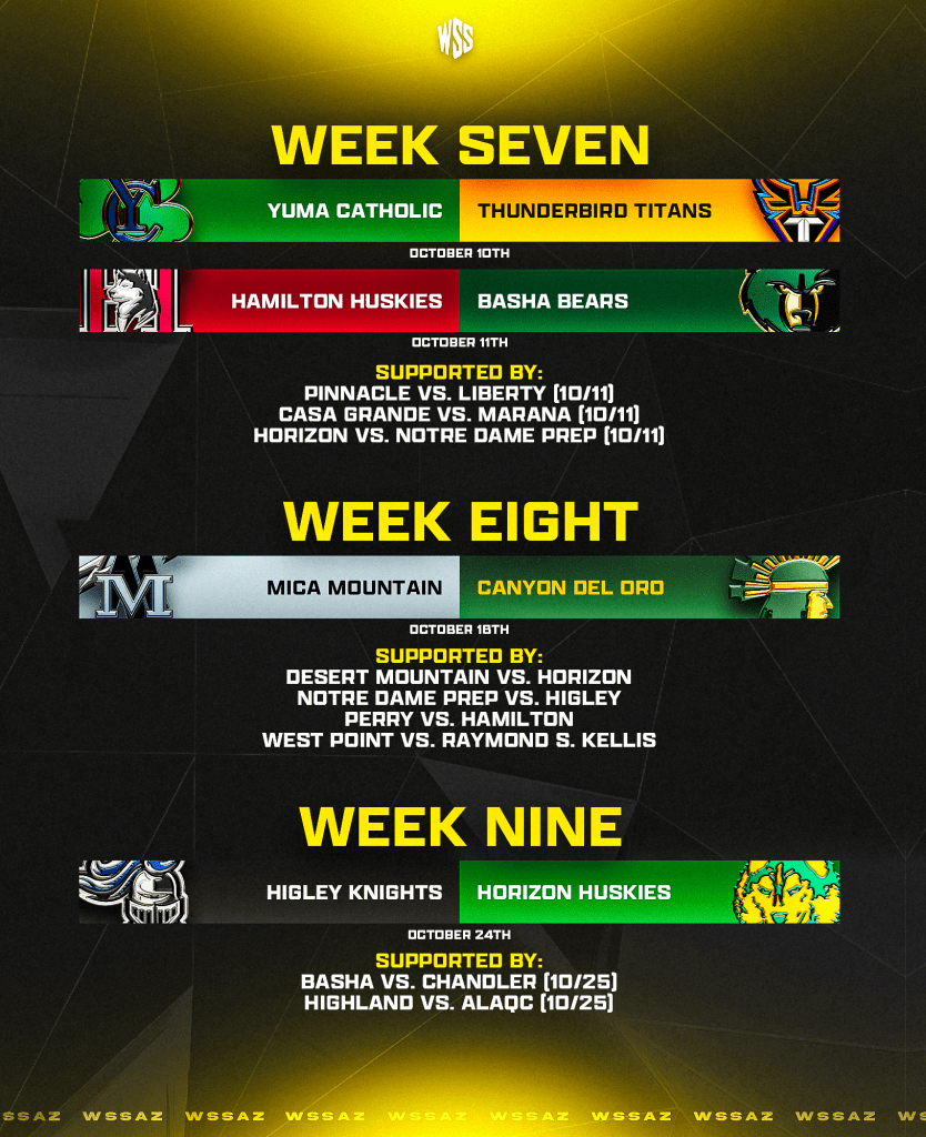 W7: Yuma Catholic vs Thunderbird (10/10), Hamilton vs Basha (10/11)