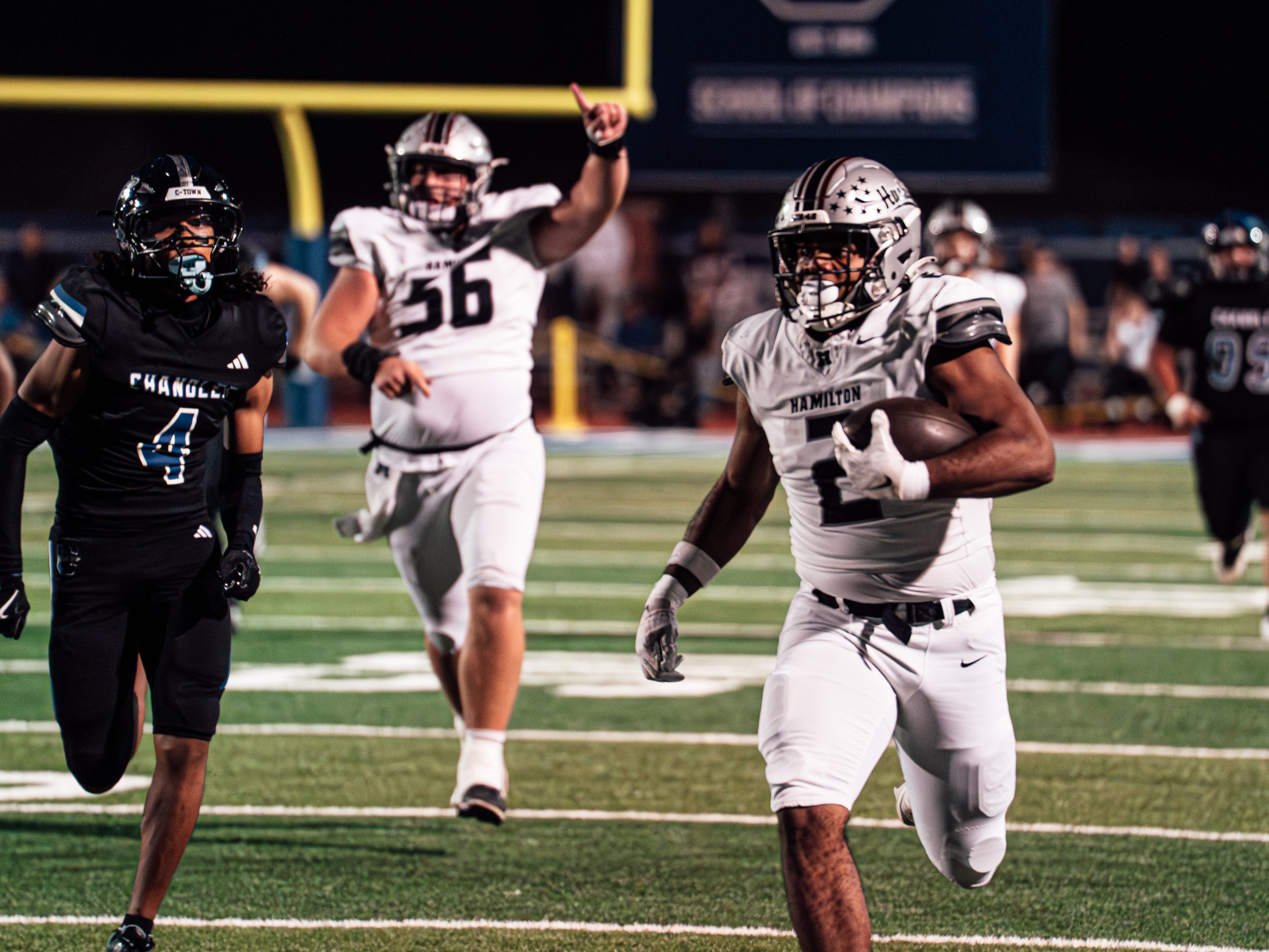After this comeback win against Chandler, Hamilton will remain #1 in the official AIA power rankings and end their regular season with a flawless 10-0 record, including wins against notable teams such as Basha High School, Brophy College Prep, and American Leadership Academy Queen Creek. With Jax Sculley likely to be out for the rest of the season, Daniel Vaita must step up into the spotlight and lead this Huskies team into the highly competitive Open Division playoff bracket.